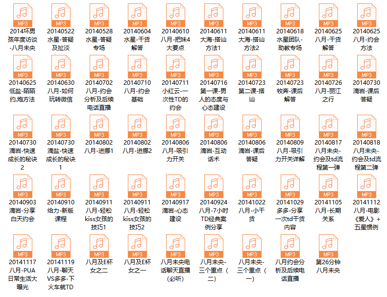 免责声明:本站大部分下载资源收集于网络,只做学习和交流使用,版权归原作者所有,请在下载后24小时之内自觉删除,若作商业用途,请购买正版,由于未及时购买和付费发生的侵权行为,与本站无关。本站发布的内容若侵犯到您的权益,请联系站长删除,我们将及时处理!:恋爱研习社 » 八月私密课程录音