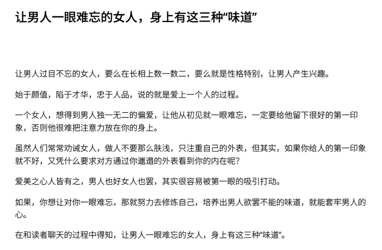 免责声明:本站大部分下载资源收集于网络,只做学习和交流使用,版权归原作者所有,请在下载后24小时之内自觉删除,若作商业用途,请购买正版,由于未及时购买和付费发生的侵权行为,与本站无关。本站发布的内容若侵犯到您的权益,请联系站长删除,我们将及时处理!:恋爱研习社 » 女人魅力那些事儿