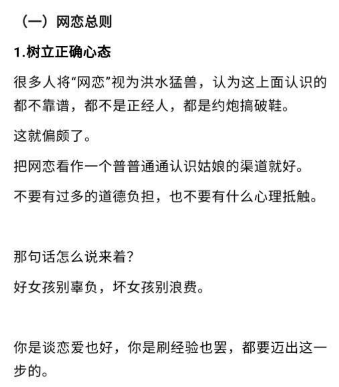 免责声明:本站大部分下载资源收集于网络,只做学习和交流使用,版权归原作者所有,请在下载后24小时之内自觉删除,若作商业用途,请购买正版,由于未及时购买和付费发生的侵权行为,与本站无关。本站发布的内容若侵犯到您的权益,请联系站长删除,我们将及时处理!:恋爱研习社 » 手把手教你网恋(上)