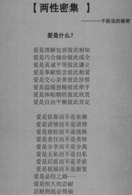 免责声明:本站大部分下载资源收集于网络,只做学习和交流使用,版权归原作者所有,请在下载后24小时之内自觉删除,若作商业用途,请购买正版,由于未及时购买和付费发生的侵权行为,与本站无关。本站发布的内容若侵犯到您的权益,请联系站长删除,我们将及时处理!:恋爱研习社 » 两性玄机