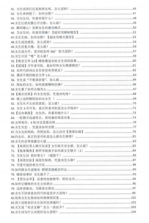 免责声明:本站大部分下载资源收集于网络,只做学习和交流使用,版权归原作者所有,请在下载后24小时之内自觉删除,若作商业用途,请购买正版,由于未及时购买和付费发生的侵权行为,与本站无关。本站发布的内容若侵犯到您的权益,请联系站长删除,我们将及时处理!:恋爱研习社 » yu情感《话术手册》