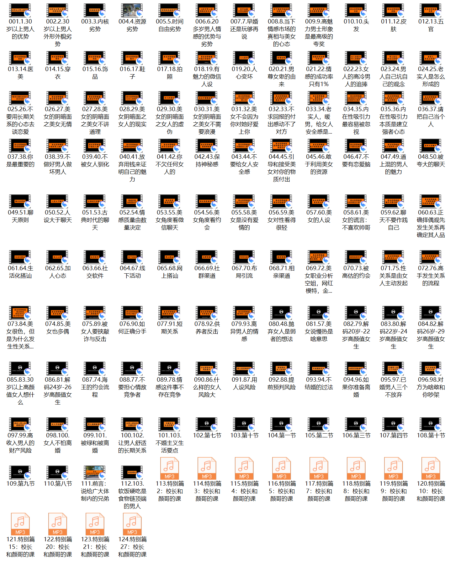 免责声明:本站大部分下载资源收集于网络,只做学习和交流使用,版权归原作者所有,请在下载后24小时之内自觉删除,若作商业用途,请购买正版,由于未及时购买和付费发生的侵权行为,与本站无关。本站发布的内容若侵犯到您的权益,请联系站长删除,我们将及时处理!:恋爱研习社 » 老李校长《男人情感宝典》(124节)