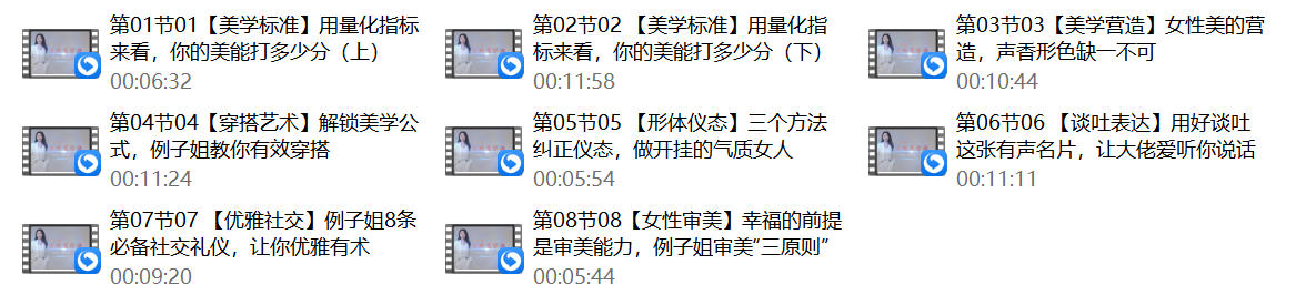 免责声明:本站大部分下载资源收集于网络,只做学习和交流使用,版权归原作者所有,请在下载后24小时之内自觉删除,若作商业用途,请购买正版,由于未及时购买和付费发生的侵权行为,与本站无关。本站发布的内容若侵犯到您的权益,请联系站长删除,我们将及时处理!:恋爱研习社 » 例子姐《女性美学课》精致女性的美商培养塑造女性魅力
