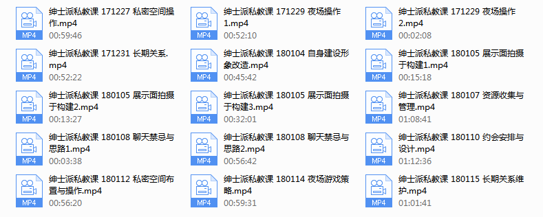 免责声明:本站大部分下载资源收集于网络,只做学习和交流使用,版权归原作者所有,请在下载后24小时之内自觉删除,若作商业用途,请购买正版,由于未及时购买和付费发生的侵权行为,与本站无关。本站发布的内容若侵犯到您的权益,请联系站长删除,我们将及时处理!:恋爱研习社 » 2018年绅士派YY私教课