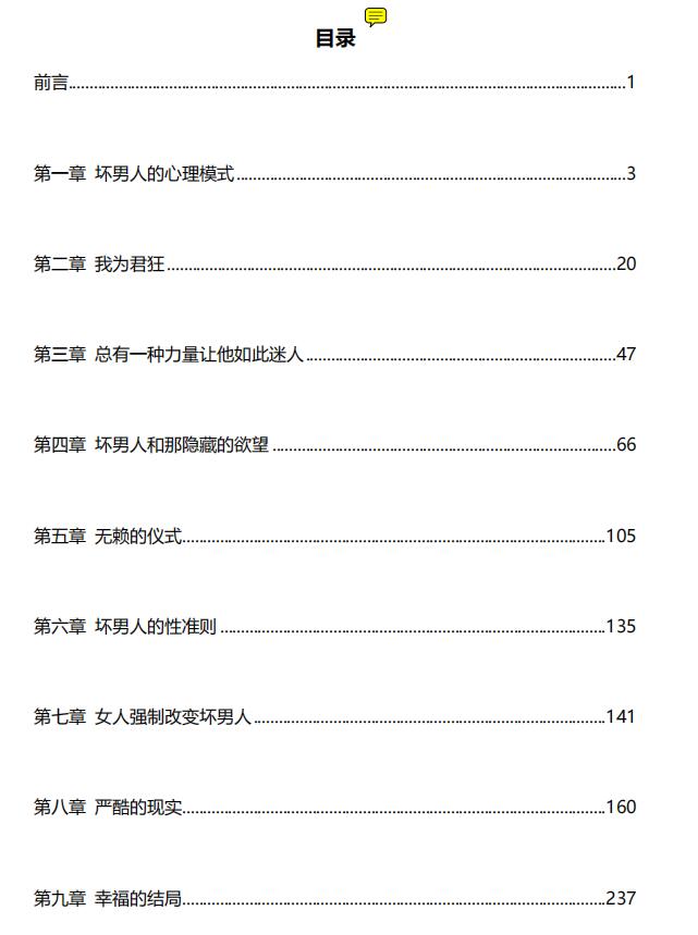 免责声明:本站大部分下载资源收集于网络,只做学习和交流使用,版权归原作者所有,请在下载后24小时之内自觉删除,若作商业用途,请购买正版,由于未及时购买和付费发生的侵权行为,与本站无关。本站发布的内容若侵犯到您的权益,请联系站长删除,我们将及时处理!:恋爱研习社 » 坏男人模式(电子版)