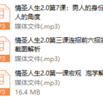1下载地址 链接:https://pan.baidu.com/s/1orhJ6TfkkvDvpmE0l-J9HQ?pwd=apeg 提取码:apeg │ 情圣人生2.0培训方式.doc │ 情圣人生2.0第一课宏观 泡学解释.mp3 │ 情圣人生2.0第二课女性资源渠道建立详细讲解.mp3 │ 情圣人生2.0第三课连招前六招实战截图解析.mp3 │ 情圣人生2...