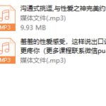 1下载地址 链接:https://pan.baidu.com/s/14pRM4hbyswRG7SE_9PEJjg 提取码:yzb2 001.一、永远爱自己.mp3 002.二、修炼成顶级魅力女(1至2).mp3 003.二、修炼成顶级魅力女(3至4).mp3 004.二、修炼成顶级魅力女(5至7).mp3 005.三、婚后生活,请你也要幸福下去(1).mp3 ...